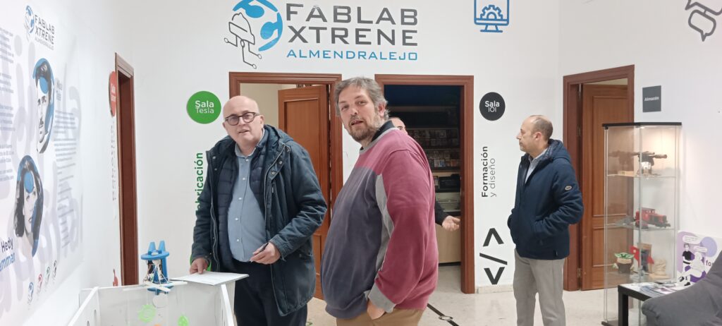 Durante su recorrido por nuestras instalaciones, pudimos intercambiar muchísimas experiencias. Hablamos sobre cómo los laboratorios como FabLab Xtrene actúan como un puente vital entre el conocimiento técnico superior y la ciudadanía. Le mostramos nuestras áreas de impresión 3D, electrónica y nuestro trabajo directo con centros educativos y asociaciones de diversidad funcional en la región.