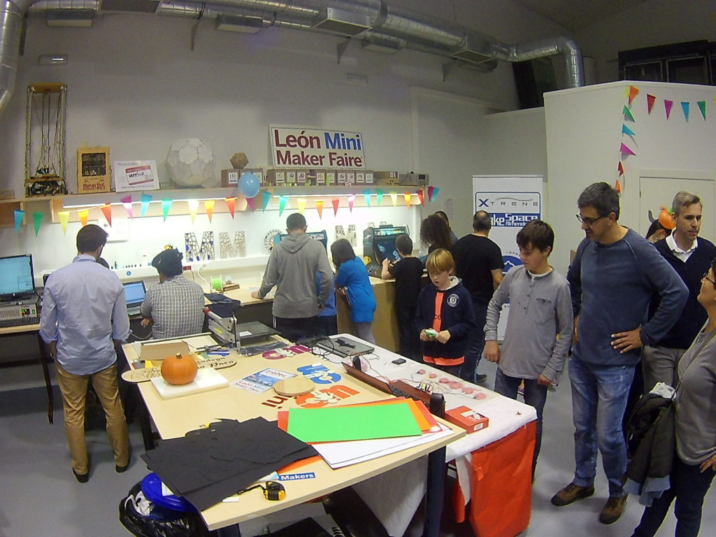 Por segundo año consecutivo, Fablab León nos ha invitado a este maravilloso evento (gracias Nuria…). Durante este fin de semana, Xtrene trasladó hasta León parte de su laboratorio e inventos para participar en este evento internacional. Además impartió talleres dirigidos a jóvenes: Plastilina conductiva e Iniciación a la electrónica. Para finalizar ofreció una charla sobre el proyecto RincónMaker-FurgoTIC que despertó gran interés entre los asistentes.